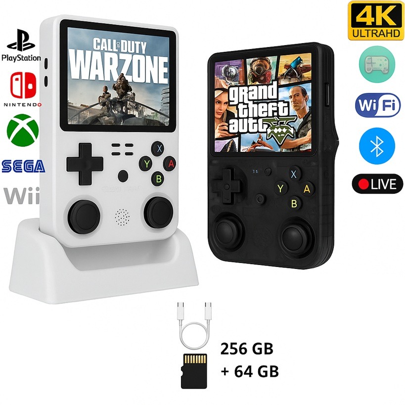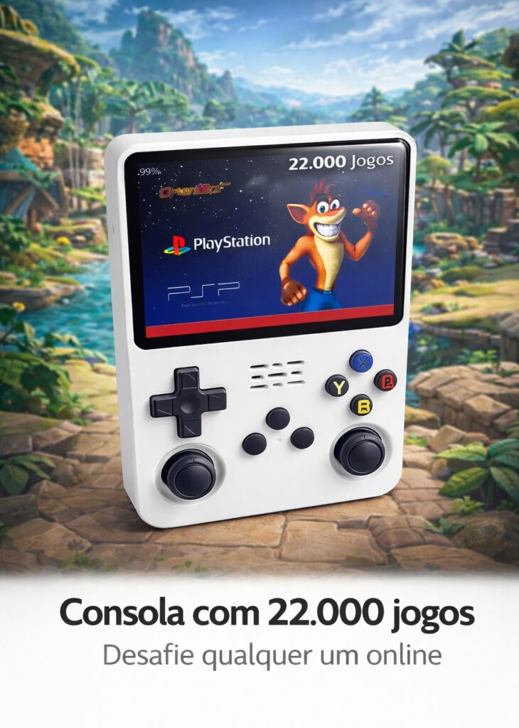 Com esta consola retrô portátil podes finalmente jogar milhares de títulos que fizeram a história dos videojogos. Dos jogos de plataformas às corridas, dos shooters aos puzzles, cada jogo está pronto para te transportar para um mundo de diversão intemporal. Tudo sem instalações nem ligações complicadas.