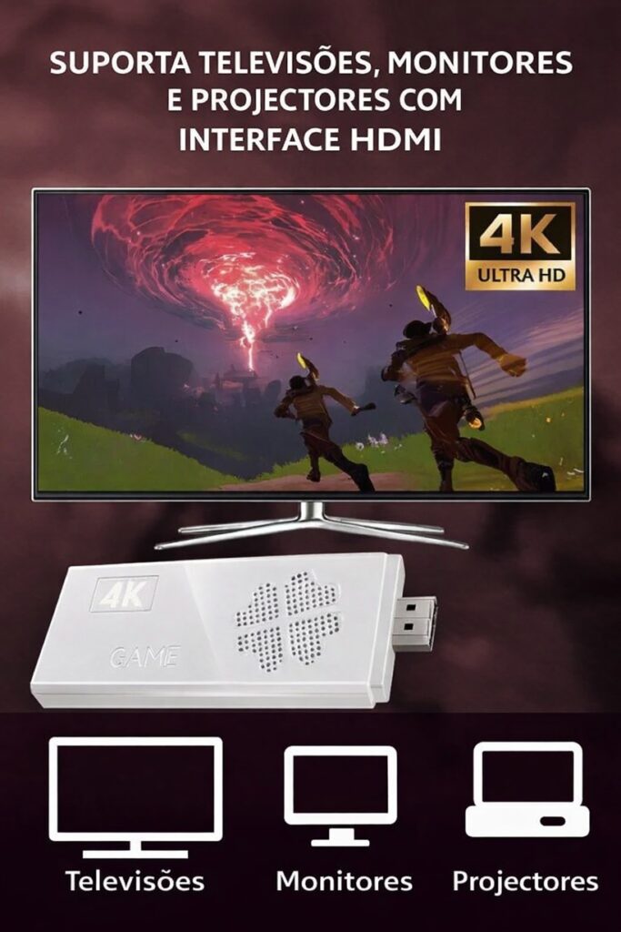 👉 Em poucos segundos já está pronto para jogar, com imagens nítidas e coloridas em qualquer tipo de ecrã!