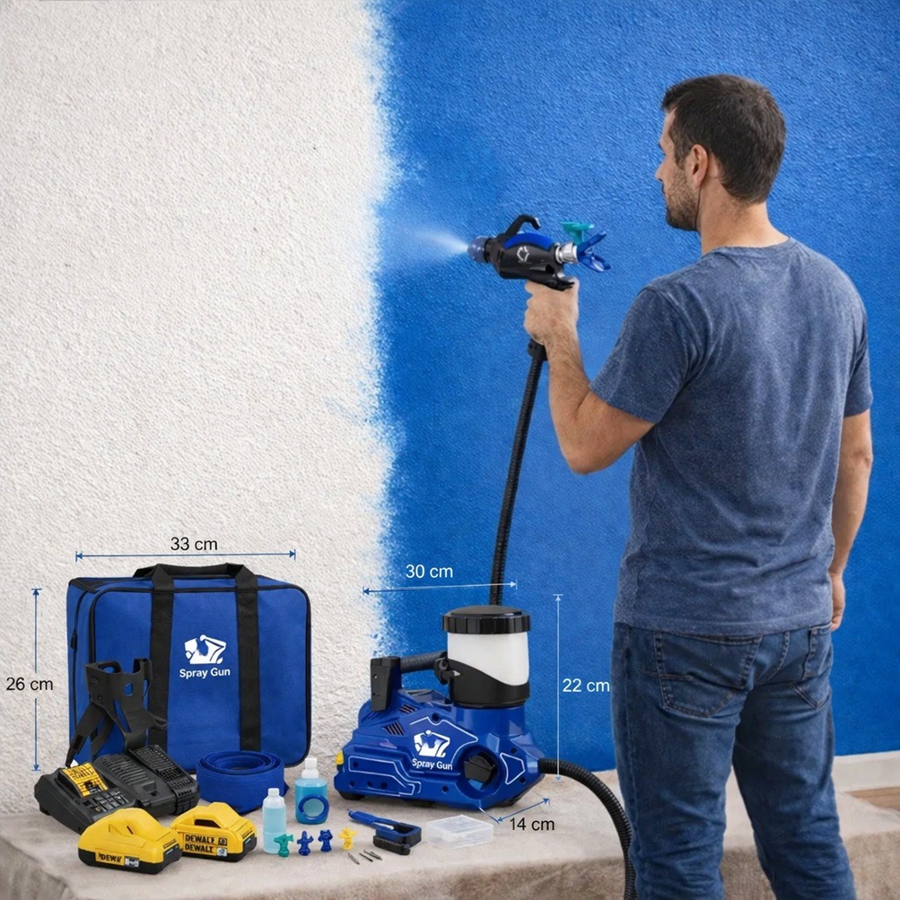 Silencioso, ligero y extremadamente preciso, funciona con cualquier tipo de pintura y es perfecto para paredes, techos, portones y muebles. Con doble batería, chorro regulable y tecnología antigoteo, es el aliado ideal para tus trabajos en casa y en exteriores.