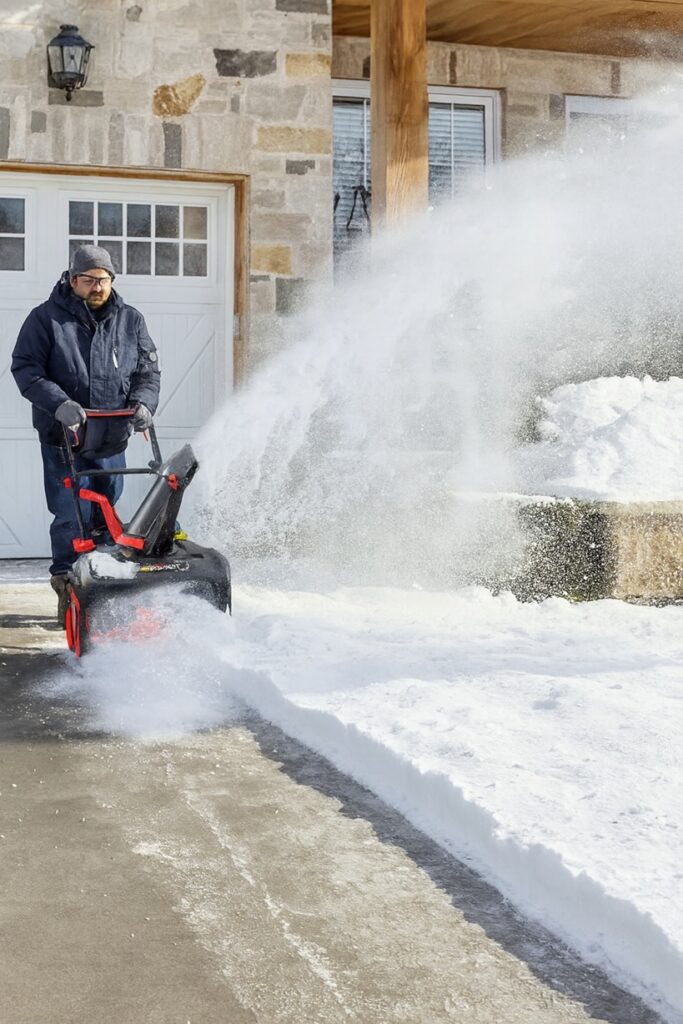 EasySnow combina una capacità di rimozione fino a 762 kg/minuto con un’ampiezza di pulizia di 53 cm, permettendoti di liberare rapidamente vialetti, cortili e parcheggi. La neve viene lanciata fino a 10 metri, mantenendo il percorso sempre pulito e senza accumuli. È progettato per gestire neve fresca, neve compattata e anche i cumuli formati durante le tempeste più intense.