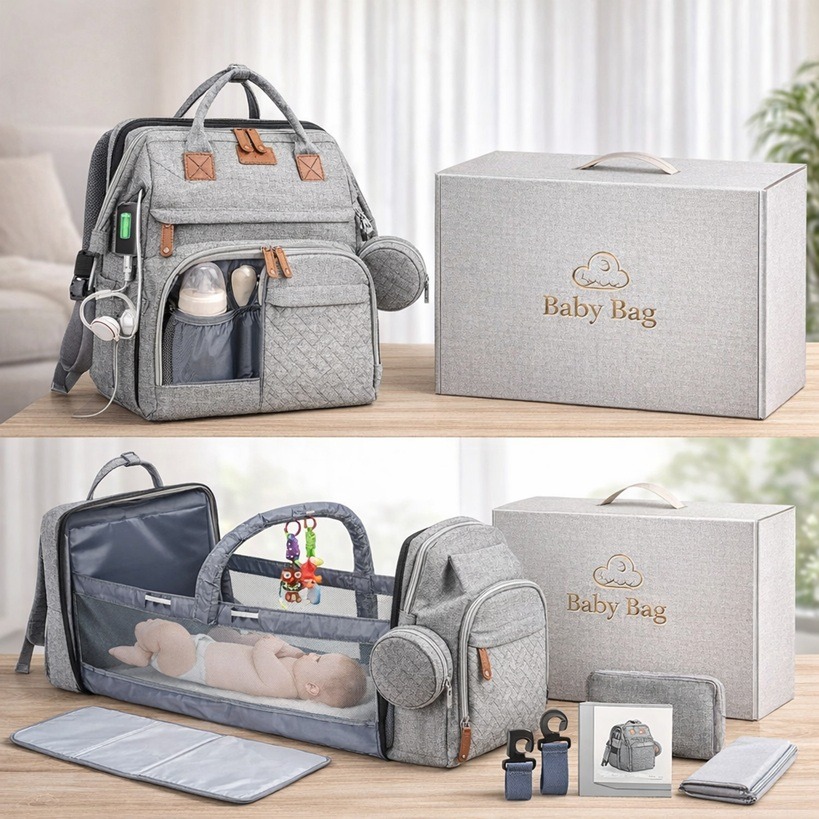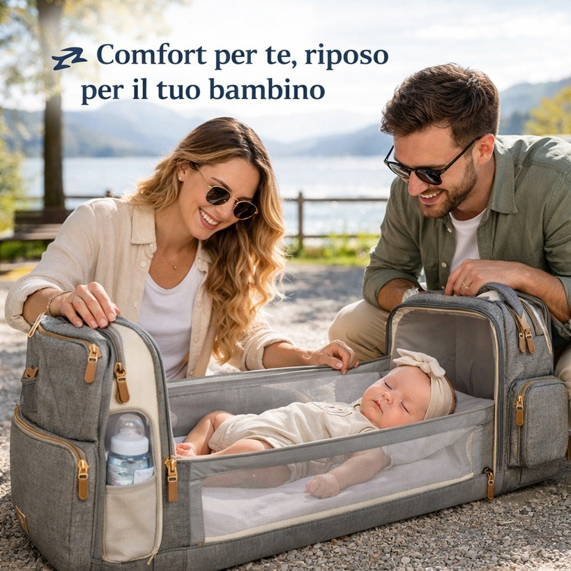 Essere genitori oggi significa essere attivi, multitasking e sempre pronti a tutto. Lo zaino fasciatoio con letto integrato è stato pensato proprio per chi vuole viaggiare leggeri ma senza rinunciare alla comodità. Aprilo in pochi secondi e il tuo bambino potrà dormire o essere cambiato in totale sicurezza e igiene, ovunque.
